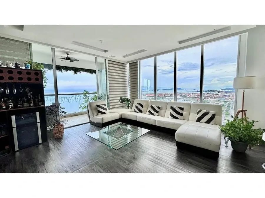 Between the Lines: Set high above Balboa Avenue, this unit comes with beautiful views of the ocean and $100K contents insurance. It is conveniently situated within walking distance to Casco Viejo (old town) and Marbella (restaurant row). If considering this for STR, be sure to check with the HOA as some buildings in Panama City do not permit rentals less than 45 days.